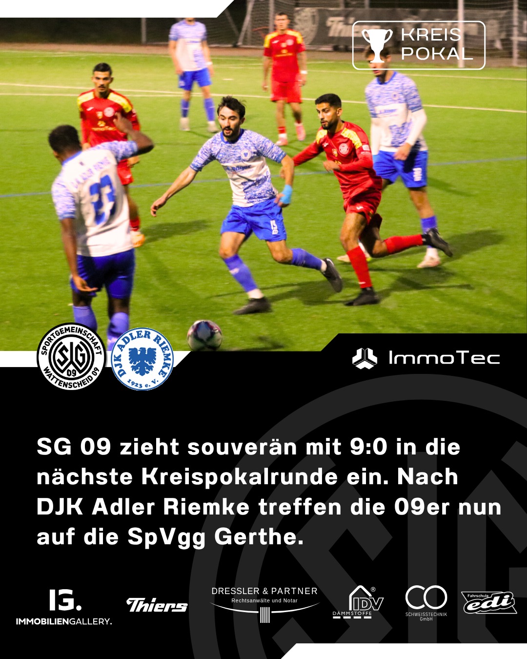 Die SG 09 konnte auch beim 1. FC Gievenbeck ihre Erfolgsserie fortsetzen und feierte beim 1:0-Auswärtssieg bereits den 5. Sieg in Folge. Das Geburtstagskind Kevin Schacht, der am Spieltag seinen 23. Geburtstag erlebte, köpfte das goldene Tor und sorgte für den Sprung auf den 2. Tabellenplatz. 400 Zuschauer, darunter mindestens 200 09-Anhänger, sahen nach fünfzehn ausgeglichenen Anfangsminuten stärker werdende Hausherren mit einigen guten Torgelegenheiten. In der