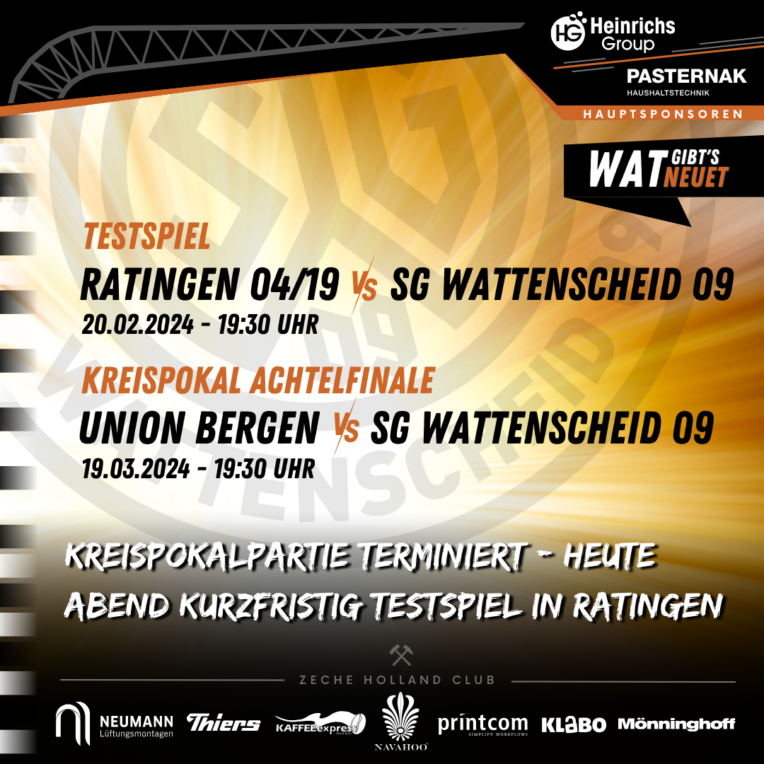 Die erste Mannschaft testet heute beim Niederrhein-Oberligisten Ratingen 04/19 um 19:30 Uhr. Da der Test recht kurzfristig angesetzt wurde, gibt es die Info auch erst jetzt. Wir versuchen einen Ticker für heute Abend zu organisieren.