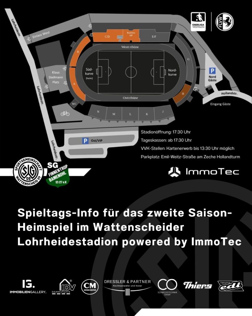 Für das zweite Heimspiel (SG Wattenscheid 09 – SG Finnentrop/Bamenohl) in der Wattenscheider Lohrheide haben wir noch ein paar organisatorische Hinweise. Anpfiff: 14. September 2025 | 18:30 Uhr Spielort: Lohrheidestadion – powered by ImmoTec Stadionöffnung: 17:30 Uhr Tageskassen: Kassenhaus Eingangsportal Süd Zahlungsmöglichkeiten: Barzahlung (Ticketpreise – SG Wattenscheid 09) VVK-Stellen: bis 13:30 Uhr können Eintrittskarten auch […]