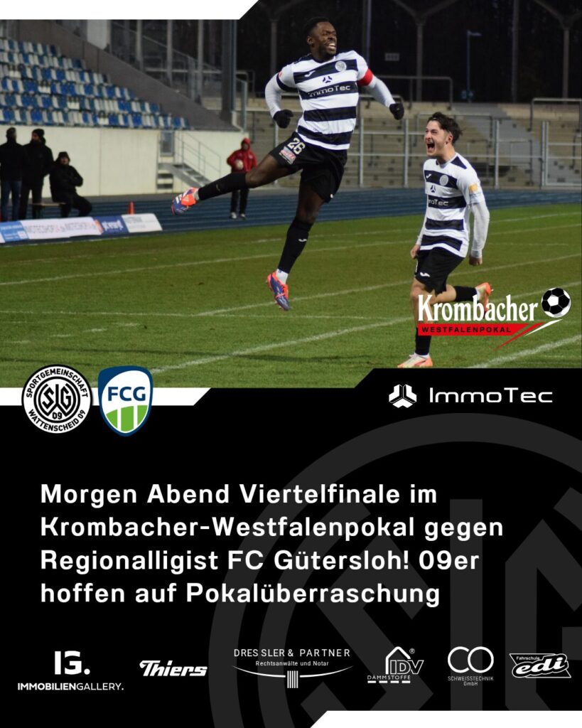 Morgen Abend Viertelfinale im Krombacher-Westfalenpokal gegen Regionalligist FC Gütersloh! 09er hoffen auf Pokalüberraschung