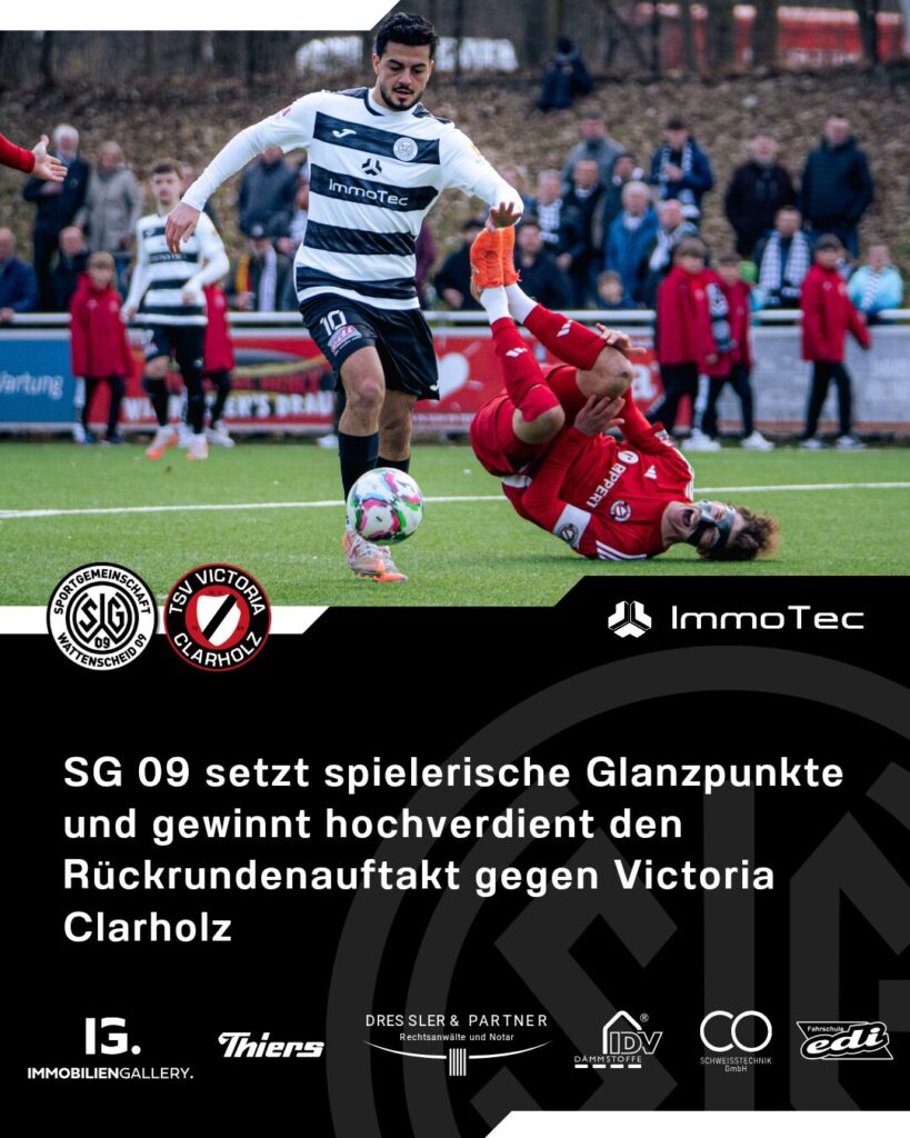 Die SG Wattenscheid 09 ist nicht nur ergebnismäßig erfolgreich in die Rückrunde der Oberliga Westfalen gestartet, sondern setzte beim 2:1-Heimsieg gegen Victoria Clarholz spielerische Glanzpunkte, dominierte den Gegner, aber verpasste aufgrund zahlreicher vergebenen Chancen einen deutlich höheren Sieg. Nach einer kurzen Abtastphase übernahmen die Nullneuner das Kommando und dominierten das Spiel. Kevin Schacht hatte nach […]