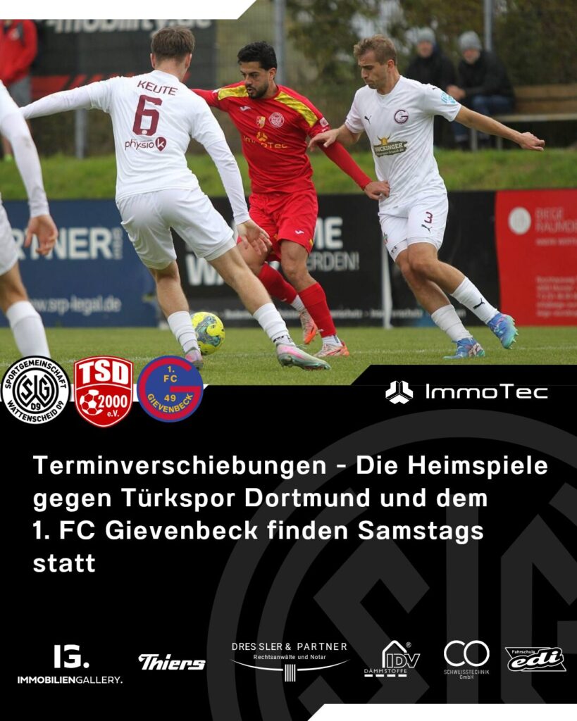 Terminverschiebungen – Die Heimspiele gegen Türkspor Dortmund und dem 1. FC Gievenbeck finden Samstags statt