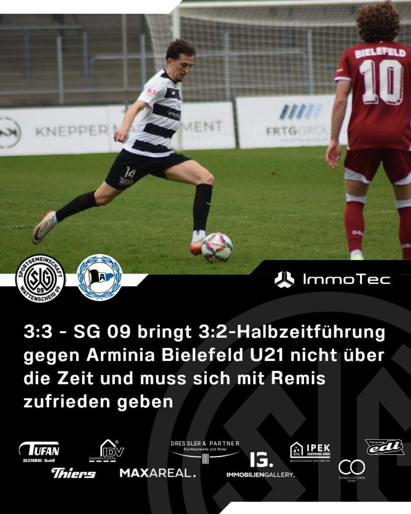 3:3 – SG09 bringt 3:2-Halbzeitführung gegen Arminia Bielefeld U21 nicht über die Zeit und muss sich mit Remis zufrieden geben