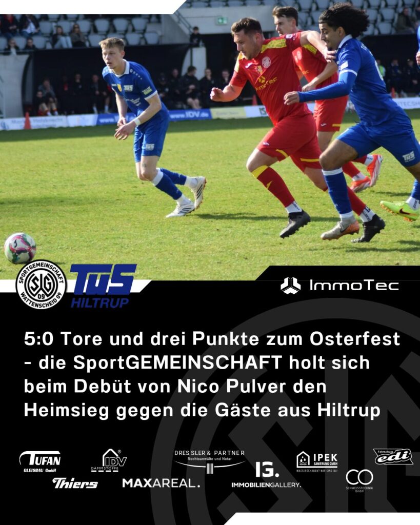 5:0 Tore und drei Punkte zum Osterfest – die SportGEMEINSCHAFT holt sich beim Debüt von Nico Pulver den Heimsieg gegen die Gäste aus Hiltrup