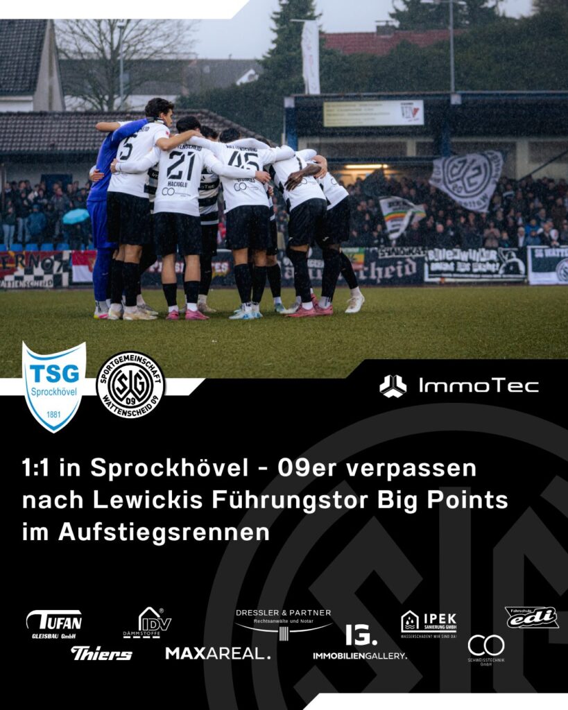 1:1 in Sprockhövel – 09er verpassen nach Lewickis Führungstor Big Points im Aufstiegsrennen