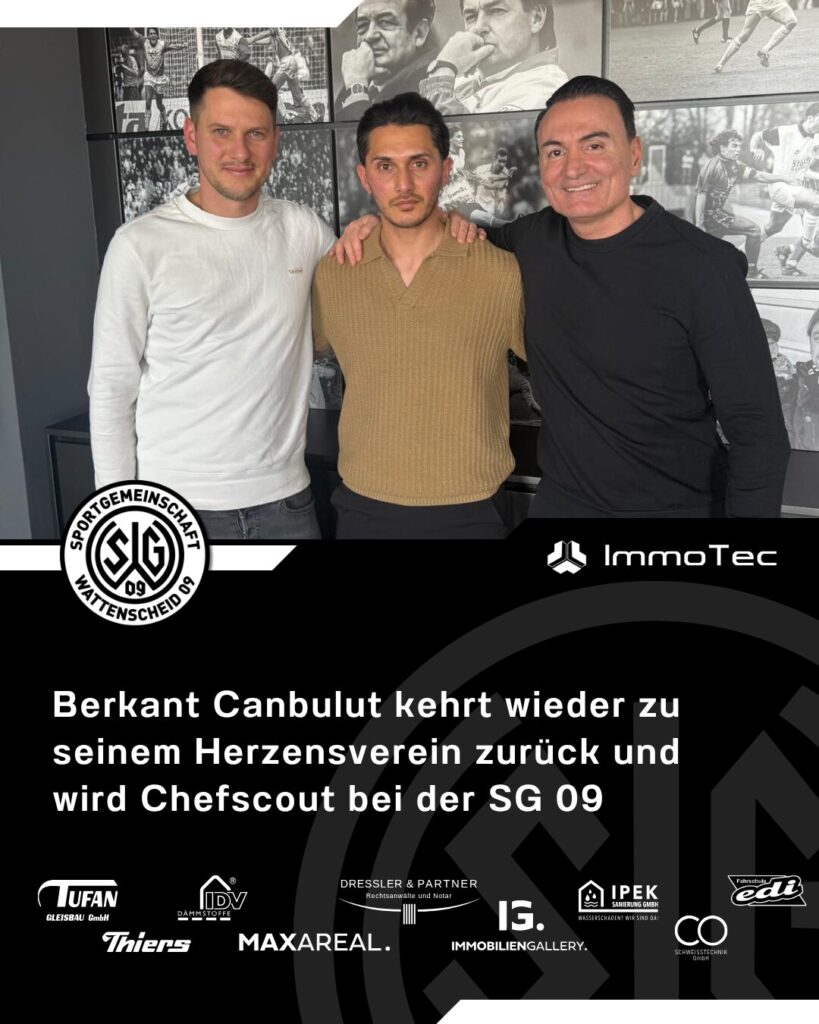 Die SG Wattenscheid 09 hat mit sofortiger Wirkung Berkant Canbulut als neuen Chefscout gewinnen können. Der 34-jährige Publikumsliebling bei den 09-Fans kehrt somit erneut zurück an die Lohrheide – diesmal in anderer Funktion. „Berko“ schnürte in drei verschiedenen Zeiträumen über 170mal das 09-Trikot und die SG 09 ist sein „Herzensverein“. Sportlich aktiv ist er aktuell […]