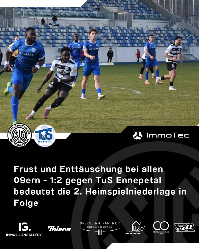Frust und Enttäuschung bei allen 09ern – 1:2 gegen TuS Ennepetal bedeutet die 2. Heimniederlage in Folge