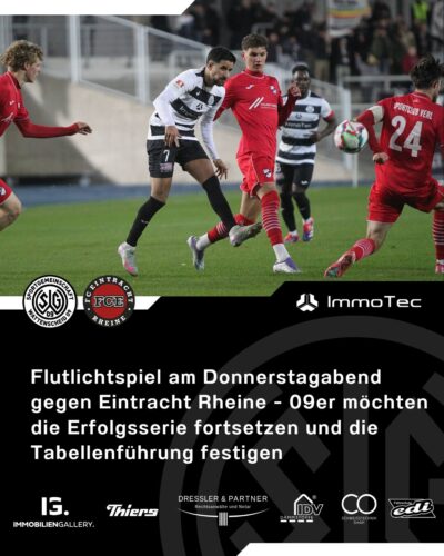 Flutlichtspiel am Donnerstagabend gegen Eintracht Rheine – 09er möchten die Erfolgsserie fortsetzen und die Tabellenführung festigen