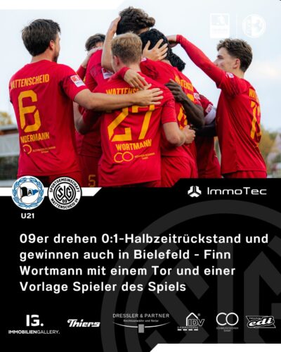 09er drehen 0:1-Halbzeitrückstand und gewinnen auch in Bielefeld – Finn Wortmann mit einem Tor und einer Vorlage Spieler des Spiels