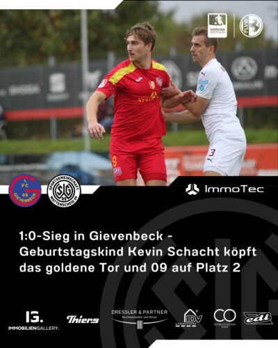 1:0-Sieg in Gievenbeck – Geburtstagskind Kevin Schacht köpft goldenes Tor und lässt SG 09 auf Platz 2 klettern