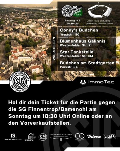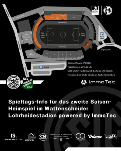 Für das zweite Heimspiel (SG Wattenscheid 09 – SG Finnentrop/Bamenohl) in der Wattenscheider Lohrheide haben wir noch ein paar organisatorische Hinweise. Anpfiff: 14. September 2025