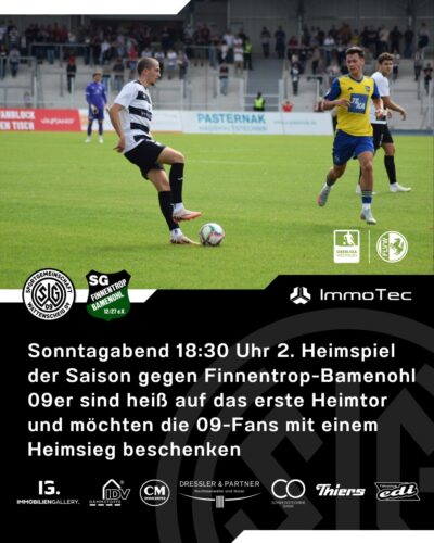 Sonntagabend 18:30 Uhr 2. Heimspiel der Saison gegen Finnentrop-Bamenohl – 09er sind heiß auf das erste Heimtor und möchten die 09-Fans mit einem Heimsieg beschenken